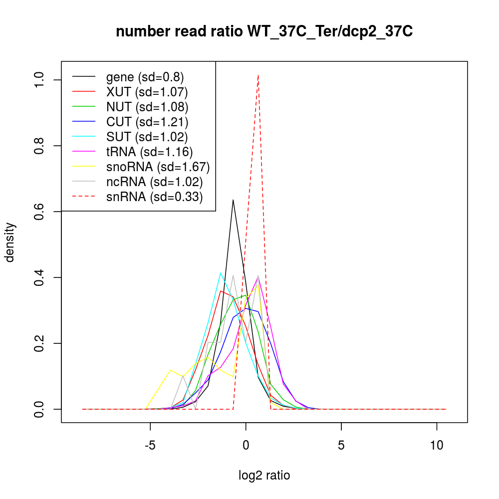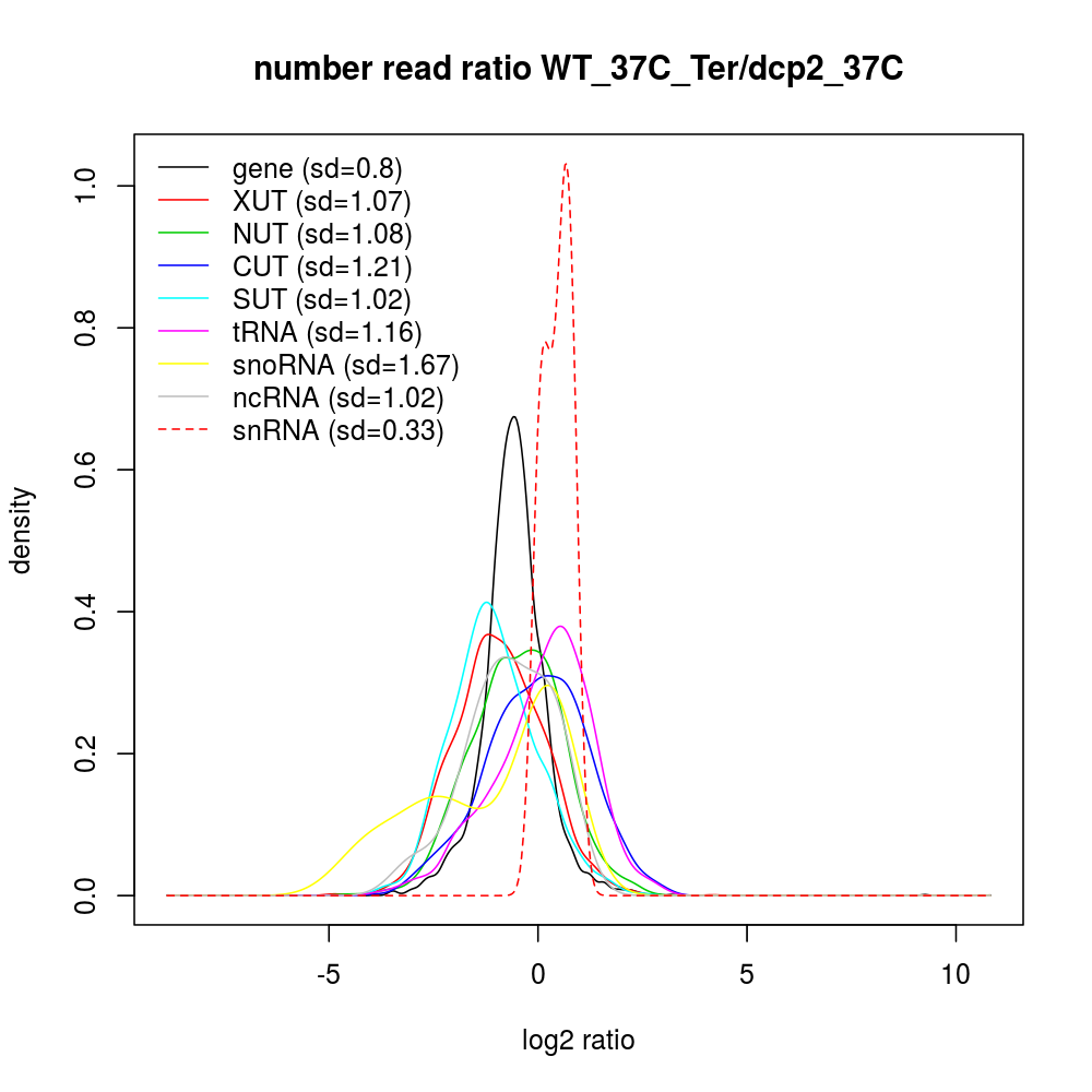 Density plot read ratio by type -