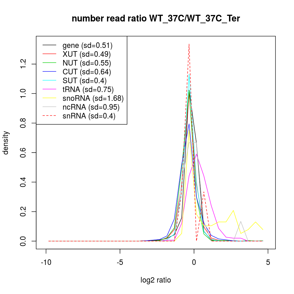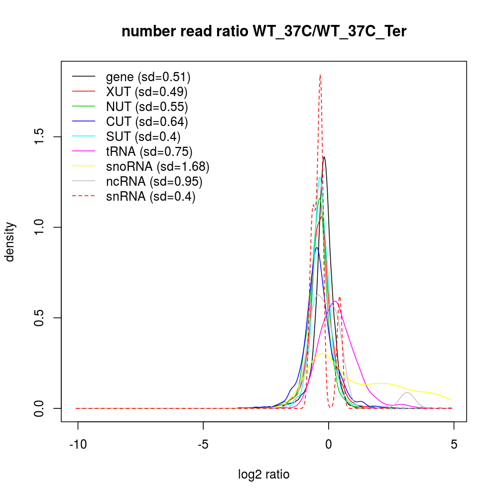 Density plot read ratio by type -