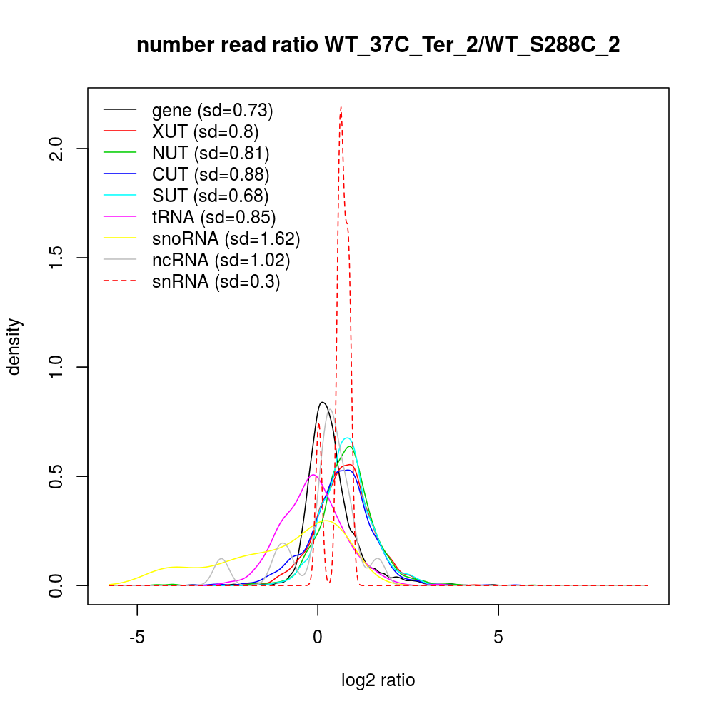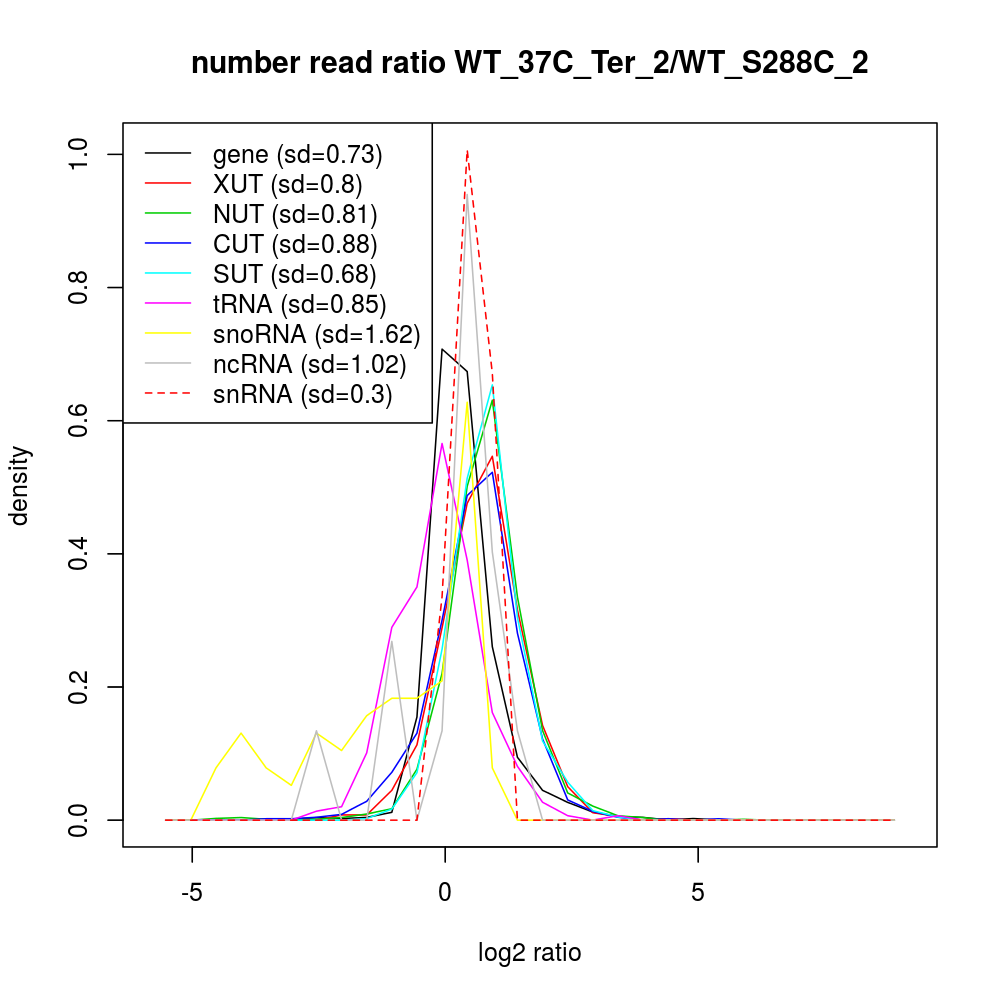 Density plot read ratio by type -
