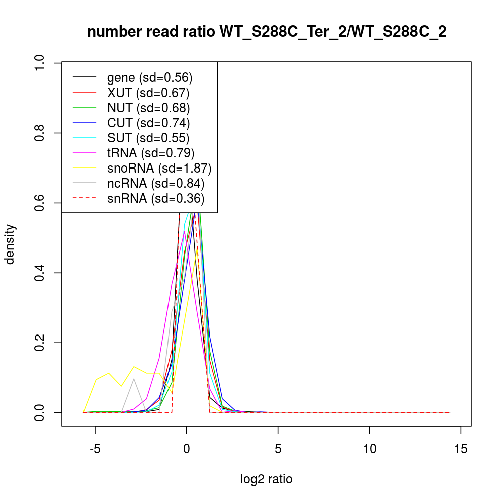 Density plot read ratio by type -