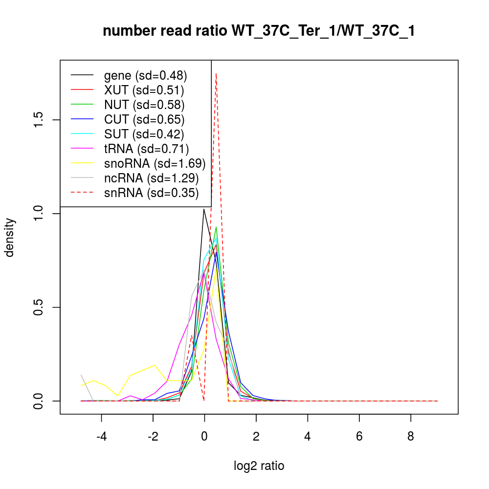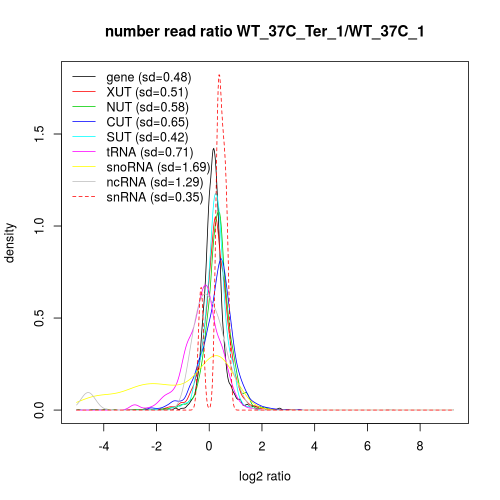 Density plot read ratio by type -