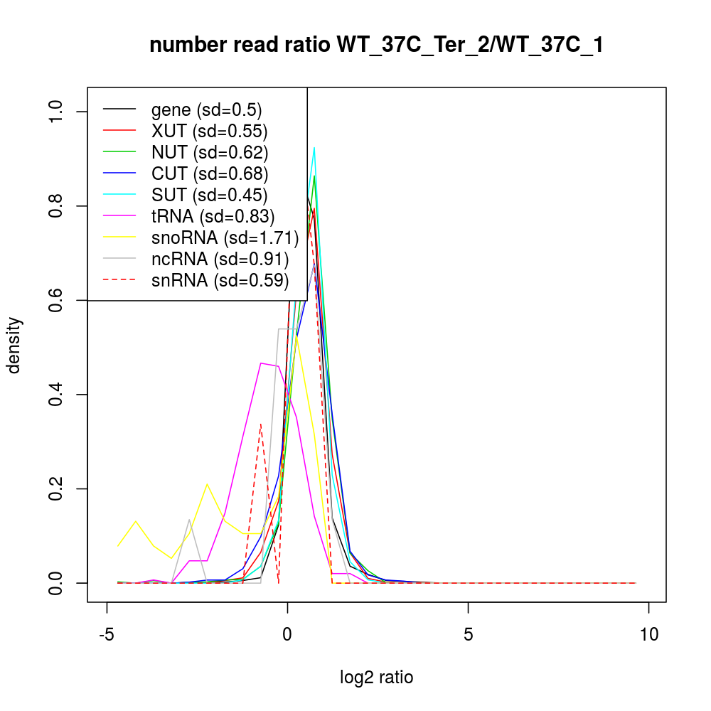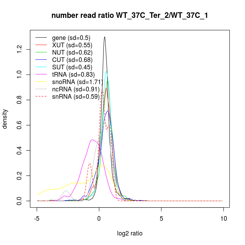 Density plot read ratio by type -