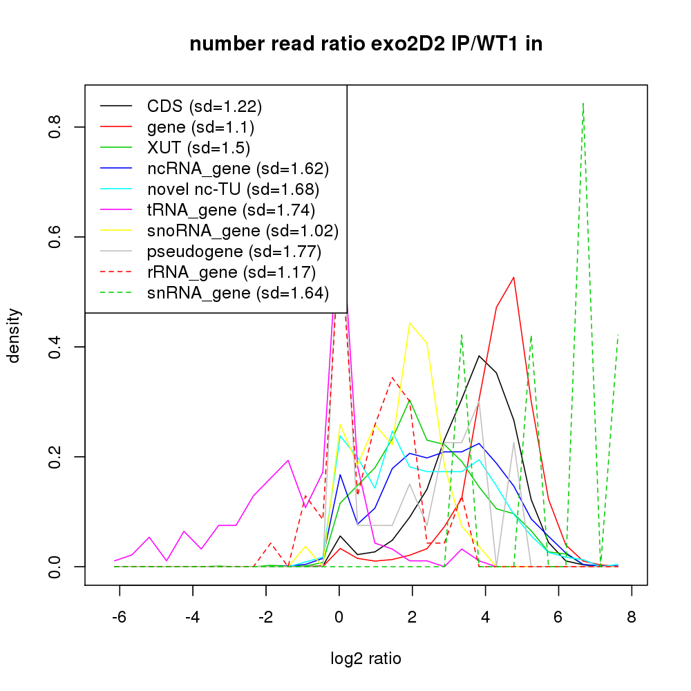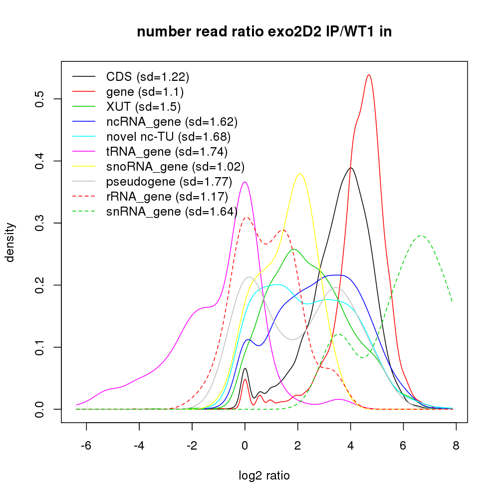 Density plot read ratio by type -