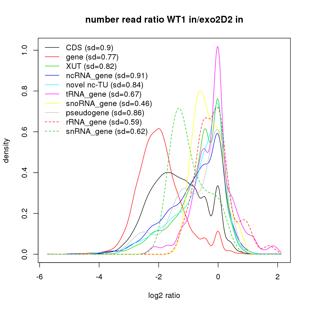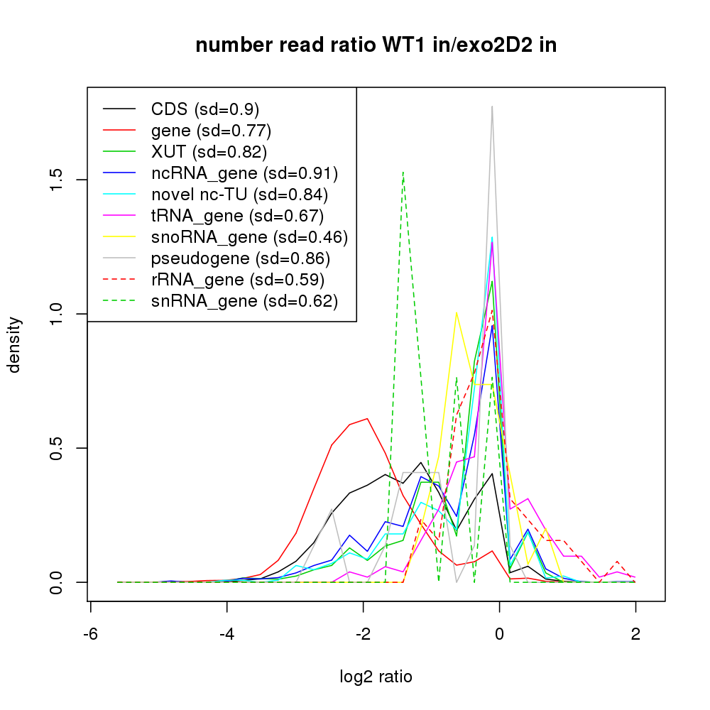 Density plot read ratio by type -