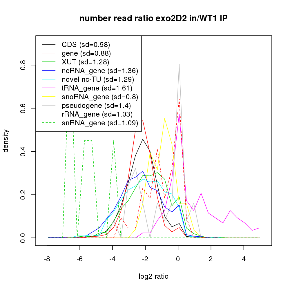 Density plot read ratio by type -