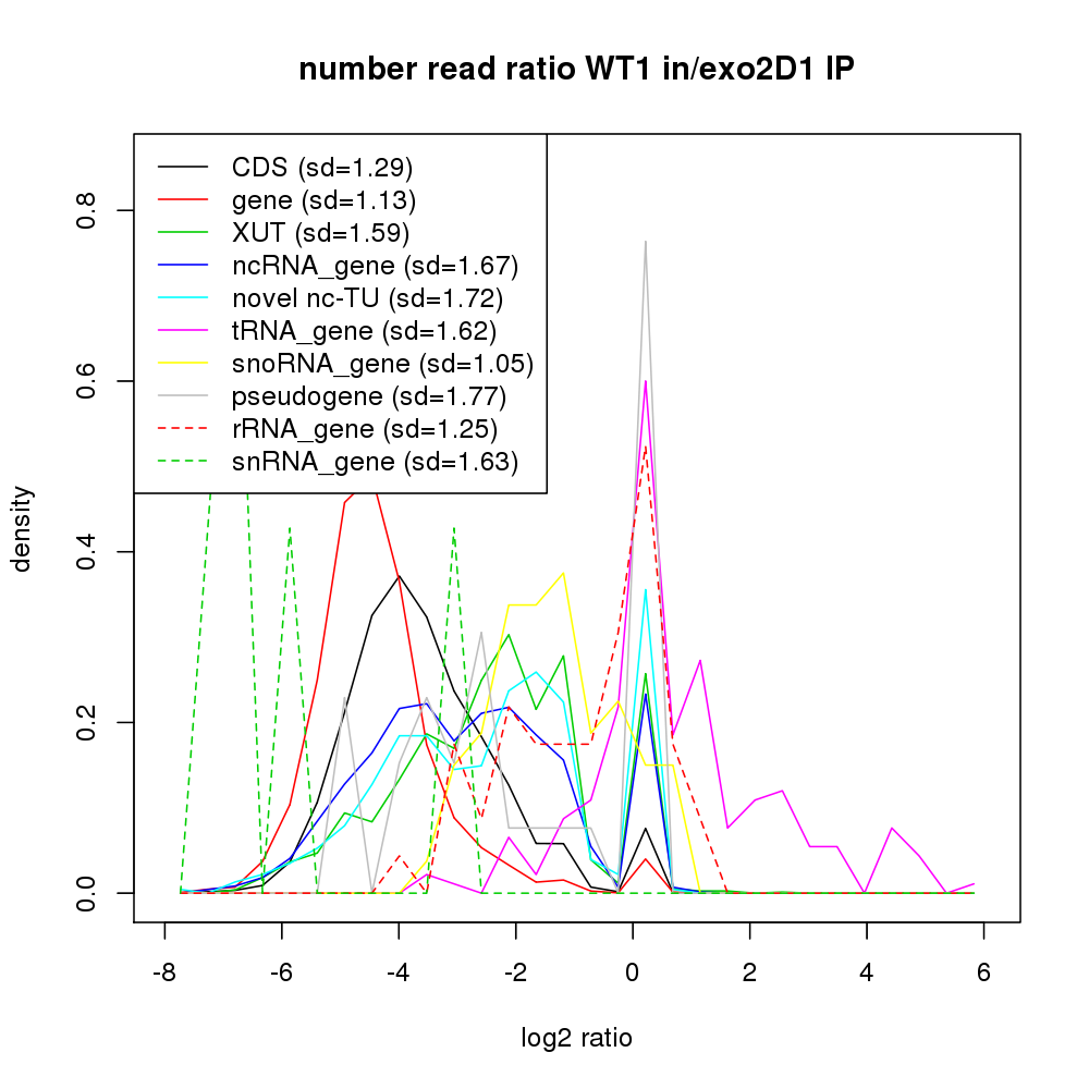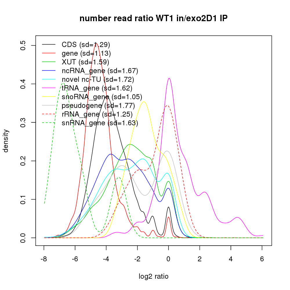 Density plot read ratio by type -