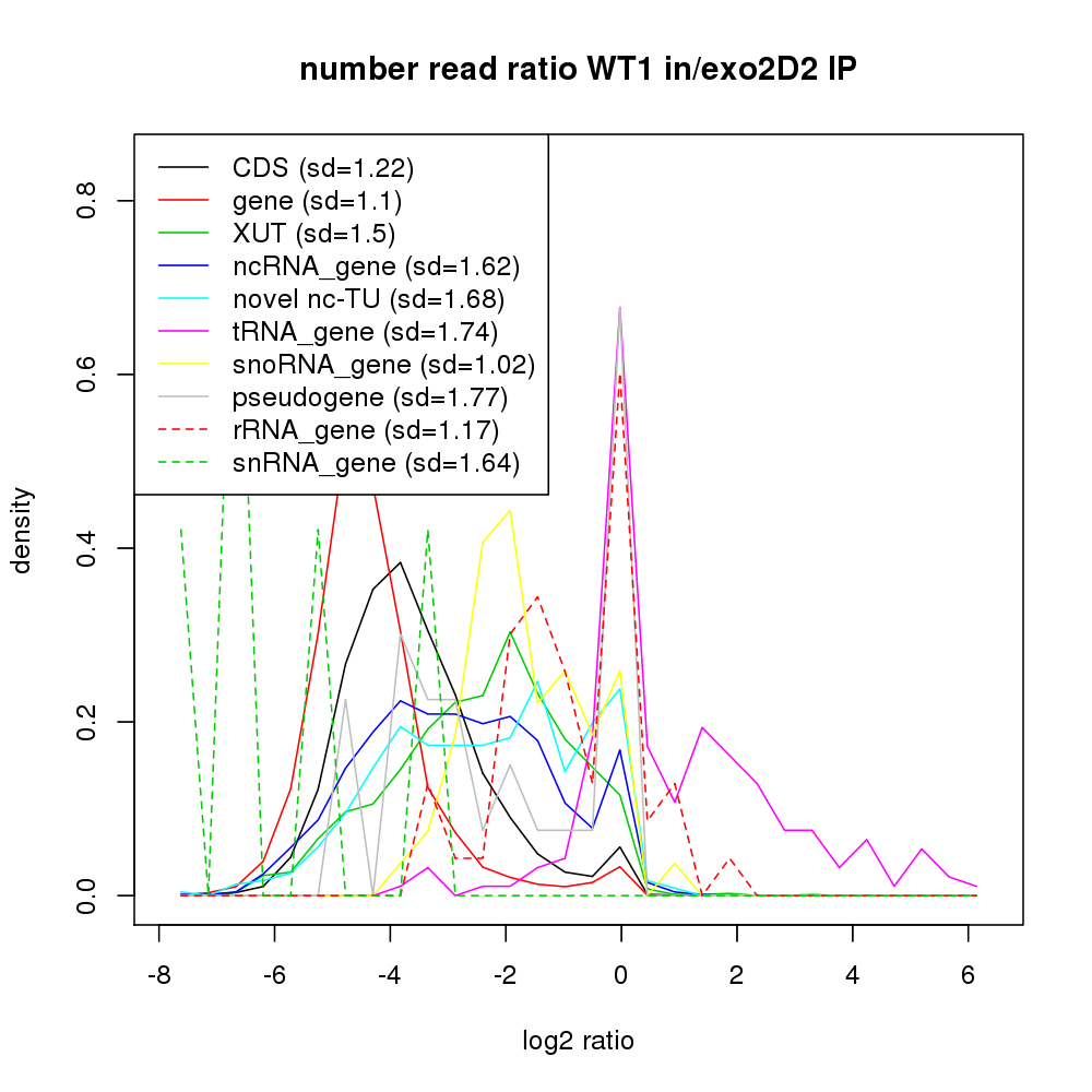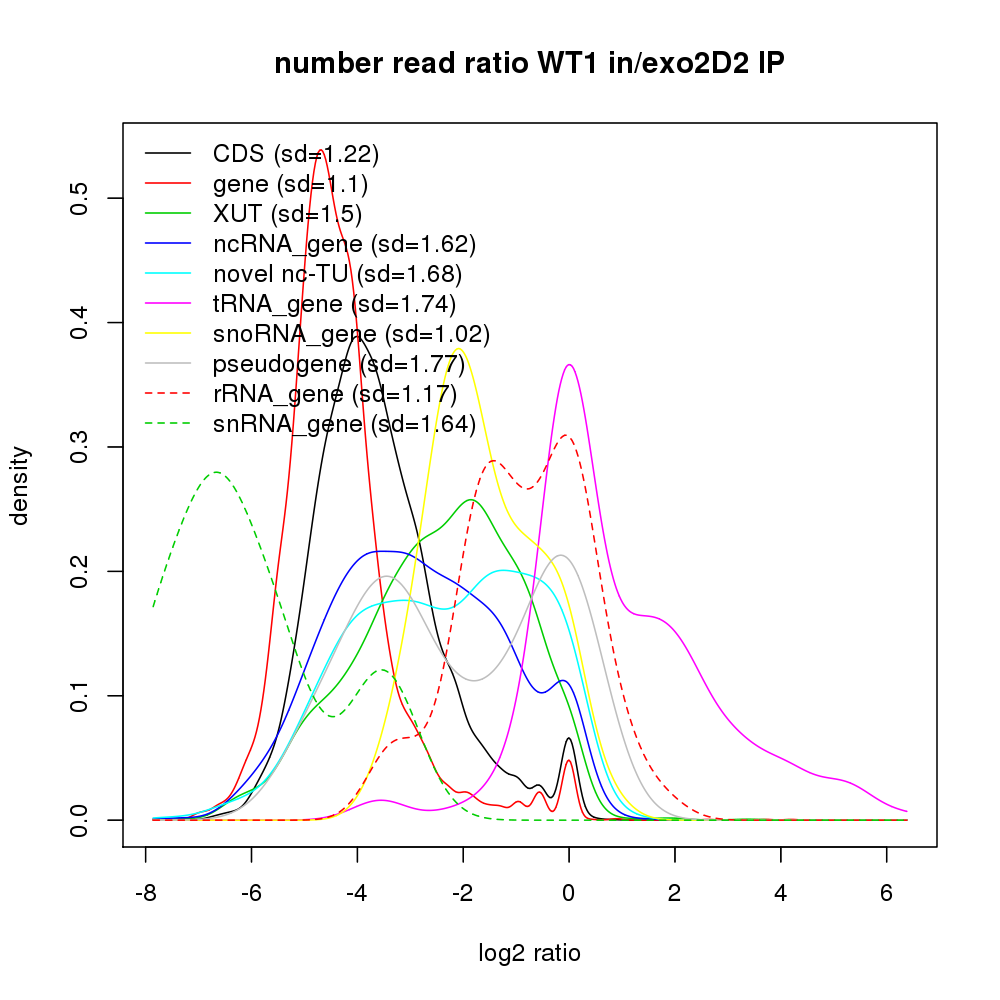 Density plot read ratio by type -