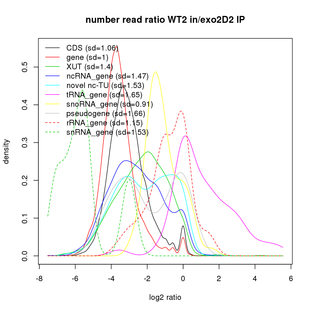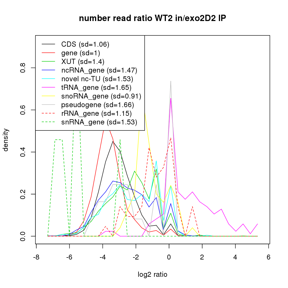 Density plot read ratio by type -